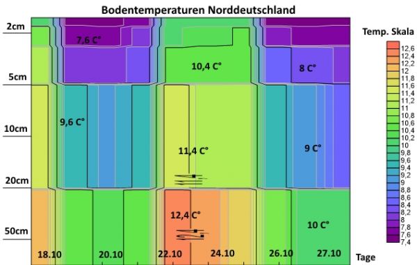 Bodentemperaturen vom 18.10.2015 bis zum 27.10.2015, für den Norden Deutschlands.