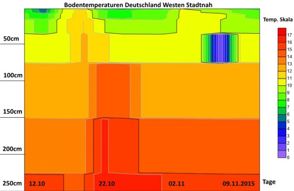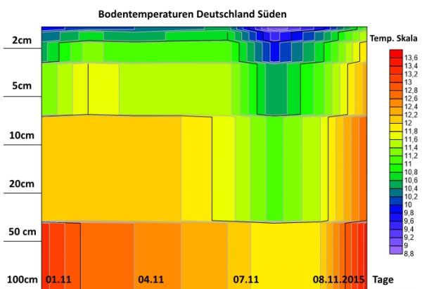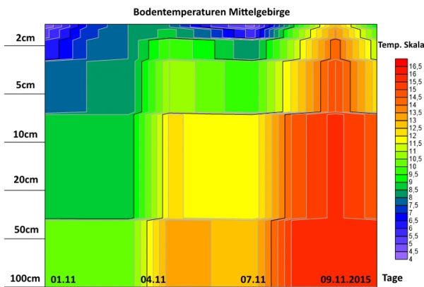 Bodentemperatruen vom 01.11.2015 bis zum 09.11.2015 für das Mittelgebirge.