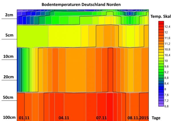 Bodentemperaturen vom 01.11.2015 bis zum 08.11.2015, für den Norden Deutschlands.