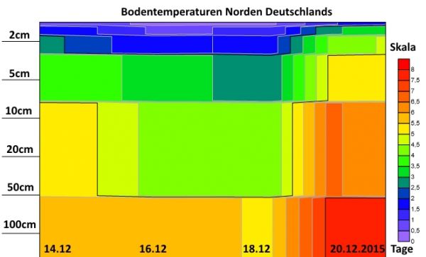 Bodentemperaturen vom 14.12.2015 bis zum 20.12.2015, für den Norden Deutschlands.