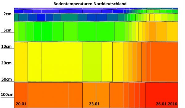 Bodentemperaturen vom 20.01.2016 bis zum 26.01.2016, für den Norden Deutschlands.