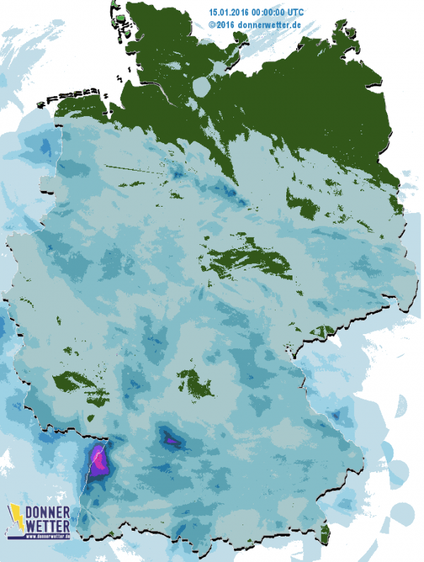 Gestern schneite es in weiten Teilen des Landes. Nur die Nord- und Ostseeregion war trocken. Besonders stark schneit es im Nordschwarzwald mit sehr viel Neuschnee.