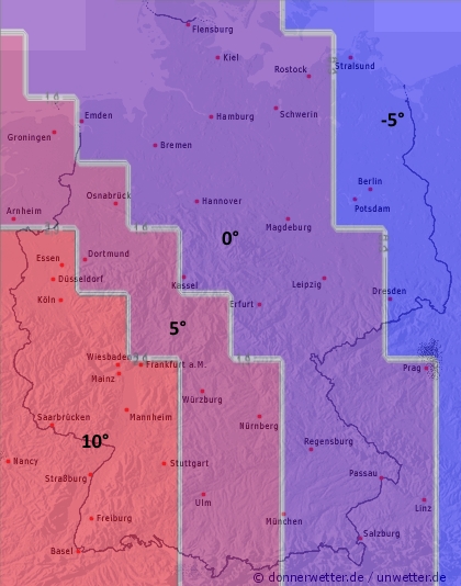 Im weiteren Wochenverlauf steigen dann aber auch im Norden und Osten des Landes die Temperaturen wieder verbreitet in den Plusbereich: