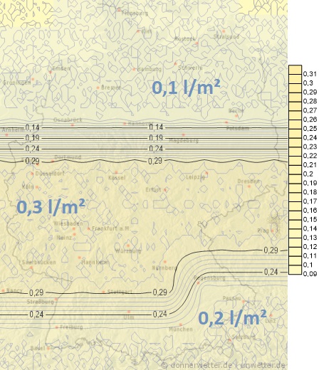 Heute fällt zunächst im Süden und in den östlichen Mittelgebirgen noch Regen oder Schnee je nach Höhenlage, sonst gibt es eine kurze Wetterberuhigung, bevor im Laufe des Abends neuer Niederschlag in den Südwesten herein zieht. Unter der Zufuhr milderer Luft geht dieser jedoch allgemein wieder in Regen über. Die Mengen erreichen dabei meist wieder zwischen 5 und 20 Liter pro Quadratmeter.