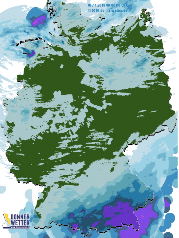 Besonders am Alpenrand hat Tief Husch bis zu 40 l/m2 an Regen hinterlassen. Nach Norden hin wurde es trockener und selten brachten Schauer nennenswerte Regenmengen. Nur auf der offenen Nordseee war es bei 10-20 l/m2 ebenfalls nass. Heute wird es wieder Regen und Schnee ab 300-400 m Höhe geben. Das nasskalte Wetter bleibt.