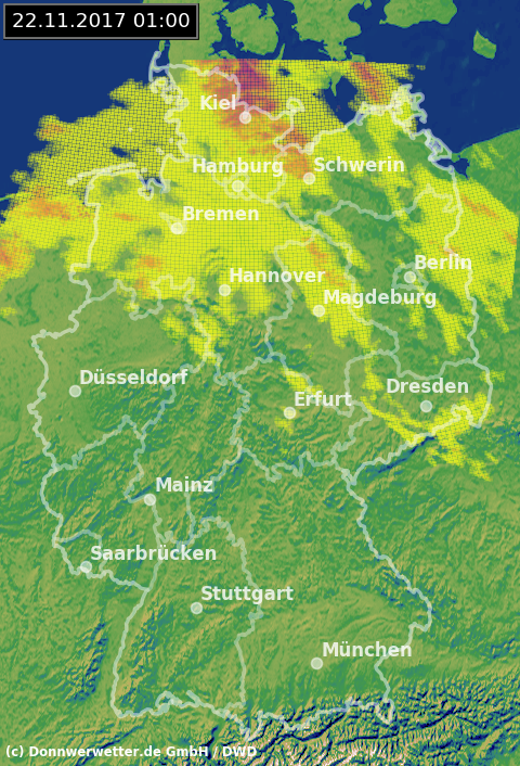 Radarbild von Mittwoch, 22.11.2017 um 01.00 Uhr