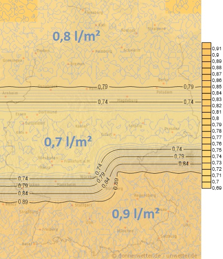 Am Donnerstag fällt weiterer Niederschlag. Dieser kann unter Zufuhr kälterer Polarluft in Lagen von oberhalbe etwa 300 bis 500 m in Schnee übergehen. Die Niederschlagsmengen liegen dabei zwischen 1 und 10 Liter pro Quadratmeter, an den Alpen auch mehr. Es muss mit Straßenglätte gerechnet werden. Trocken bleibt es in Teilen des Nordostens.