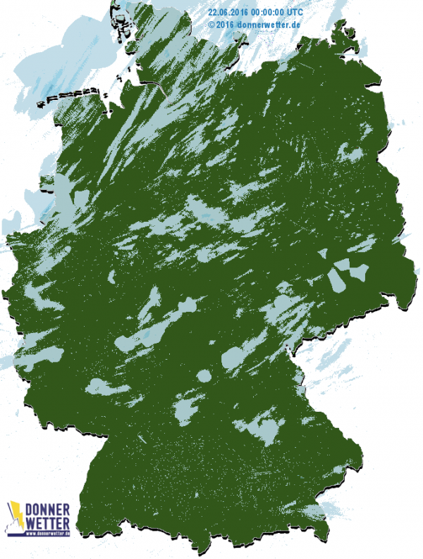 Es gab nur wenig Regen in den letzten 24 Stunden. Nur vereinzelt gab es ein paar Tropfen. DIe Verdunstung betrug zwischen 3 und 5 l/m2, so dass es zum Teil für wenige Stunden mal abtrocknete. Allerdings nähern sich schon wieder Schauer und Gewitter, so dass es wieder nass wird.