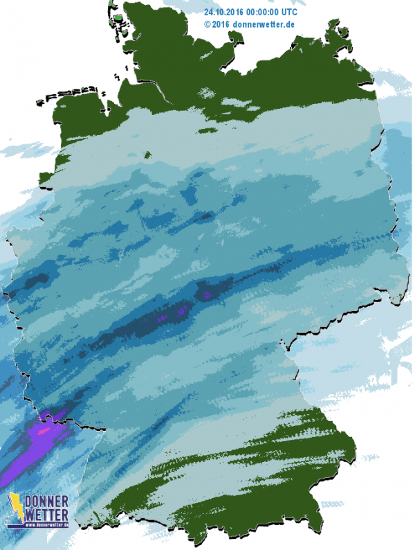 Deutschland ist nass geworden. Bis auf die Küste, gab es gestern Landregen zwischen dem Schwarzwald und Berlin. Besonders in den Mittelgebirgen gab es über 20 l/m2. Auch im Saarland war es mit 30 l/m2 sehr nass.