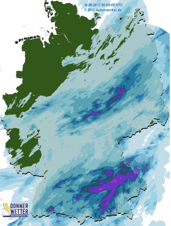 Achtung, in der Nacht auf Samstag kann es im Südosten kräftig schütten, dabei können Niederschlagsmengen von teilweise über 50 Liter pro Quadratmeter fallen. Es drohen wieder Überschwemmungen.