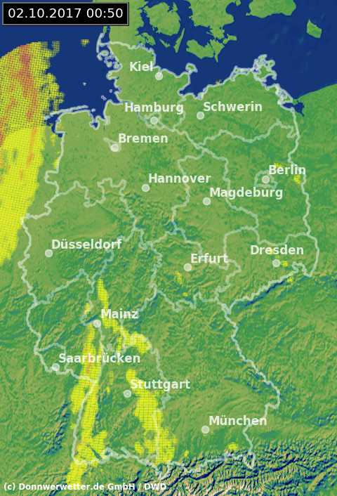 Radarbild von Montag, 02.10.2017 um 00.50 Uhr