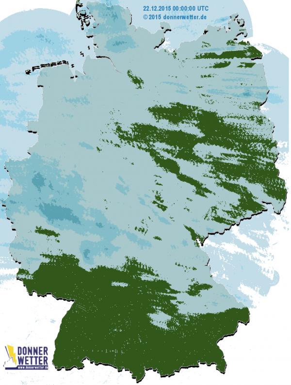 Regenradar 24 Stunden: besonders nördlich der Mittelgebirge