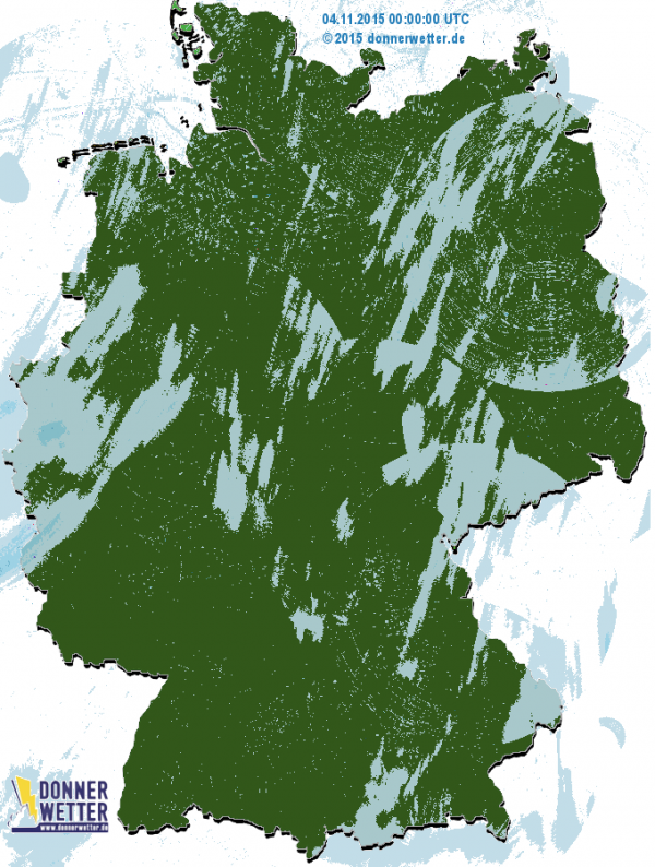Das Regenradarbild zeigt in der 24 Stunden-Analyse nur geringe Regenmengen. Tasgüber regnet es noch ein bisschen in Ost- und Norddeutschland. Sonst bleibt es trocken. Mehr dazu im Regenscanner.