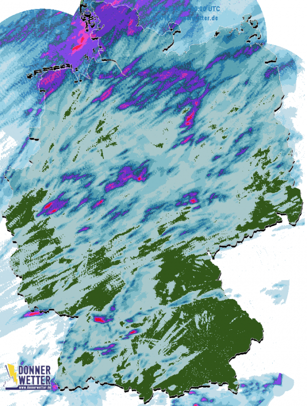 Auch aktuell ziehen noch vereinzelte Gewitter über den Alpenraum und den Südosten des Landes, diese klingen jedoch in den kommenden Stunden ab. Anschließend bleibt es landesweit gewitterfrei.