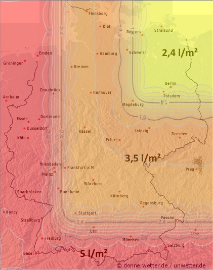 Von Holstein über Ostfriesland, das Ems- und Münsterland bis an den Niederrhein kam es zu unwetterartigen Gewittern mit Starkregen und Hagel. In kürzester Zeit fielen vielerorts mehr als 50 Liter Niederschlag pro Quadratmeter. Im Lauf der Nacht und in den Morgenstunden zogen die Unwetter weiter in Richtung Nordosten.