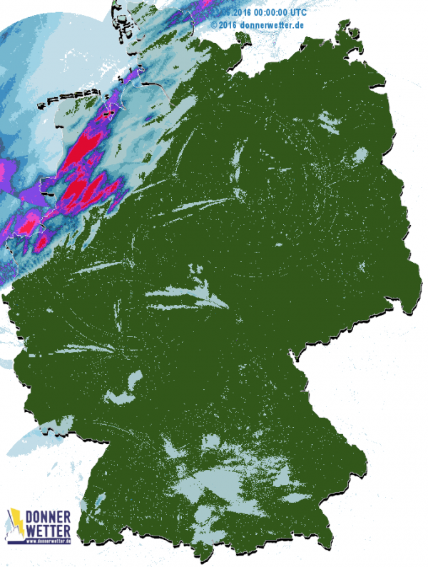 Im Lauf des Abends zogen dann erste, noch vereinzelte, Schauer über den Nordwesten des Landes hinweg. In der ersten Nachthälfte erreichte dann ein weiteres, wesentlich dichteres, Niederschlagsgebiet den Nordwesten.