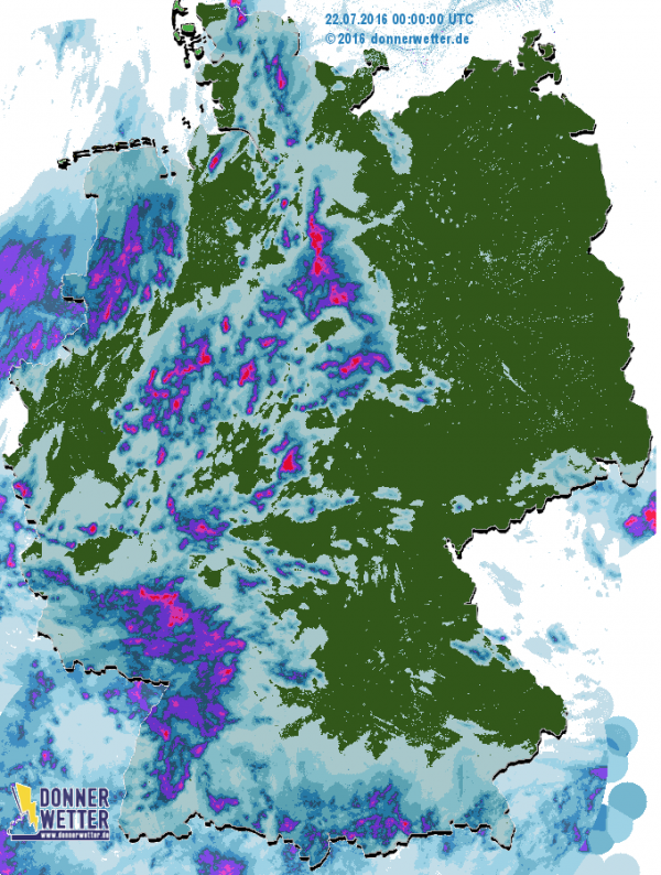 Am Abend näherte sich dann von Südwesten ein weiteres Regenband und sorgte vor allem in der Pfalz und der Eifel für gewittrige und mitunter auch unwetterartige Regenschauer.