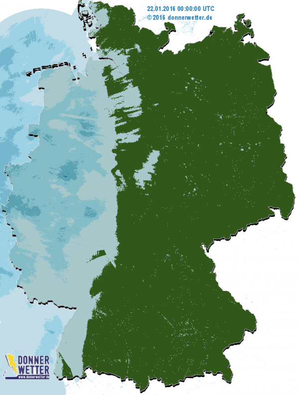 Auf dem 24 Stunden Regenradar ist das Schneeband in der Westhälfte des Landes zu sehen. Verbreitet gab es hier Eisregen und Schnee.