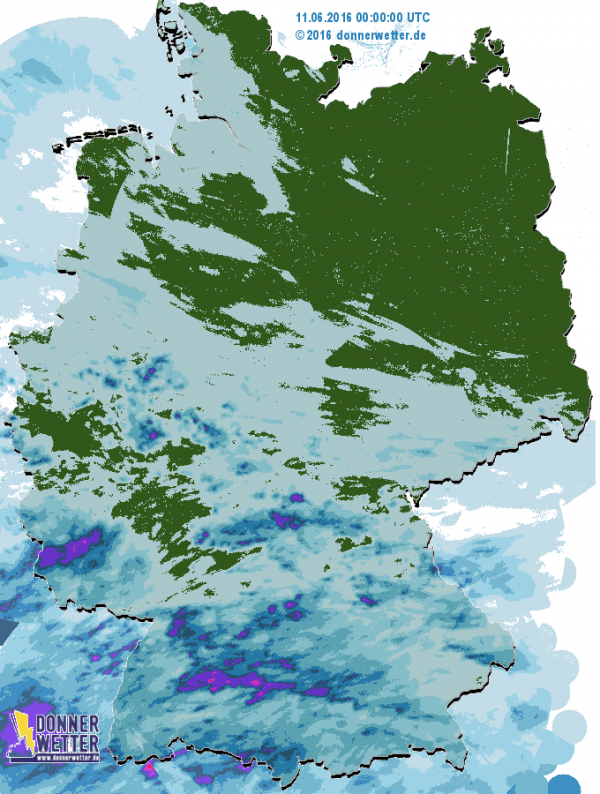 Gestern gab es besonders im Süden und Westen erste Schauer und lokale Gewitter. Im Saarland und auf der Alb fielen bis zu 35 l/m2. Auch heute wird es wieder nass. Am wenigsten Regen fällt in Richtung Ostsee und an der Oder.