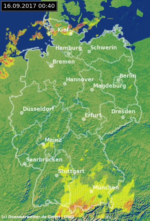 Radarbild von Samstag, 16.09.2017 um 00.40 Uhr
