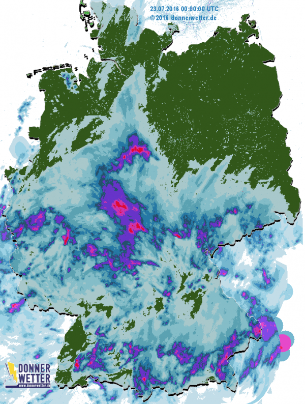 Der Samstag war durch eine Zweiteilung geprägt. Der Norden und Osten blieben trocken, während im Süden und Westen Schauer und Gewitter für Unruhe sorgten. Es gab lokal bis zu 70 l/m2 an Regen durch Gewitter und entsprechend Überschwemmungen, wie an der Mosel in RP, oder auch in NRW und in Hessen.