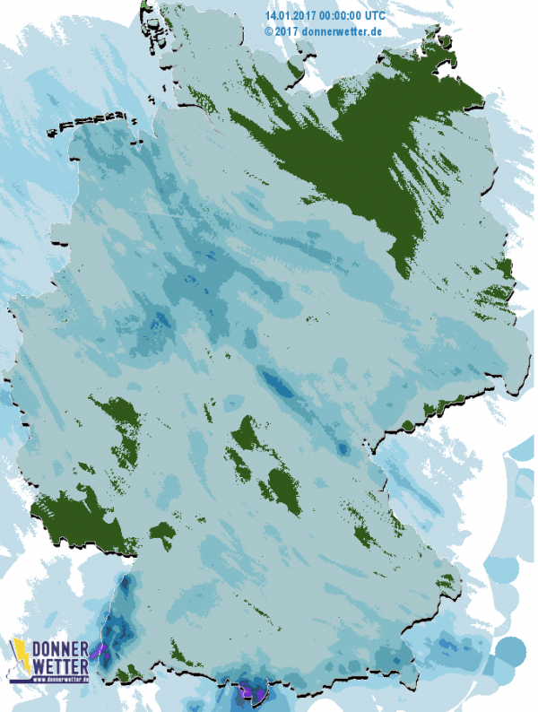 Der äußerste Nordosten ist trocken verblieben. Weitgehend der Rest der Bundesrepublik ist am gestrigen Samstag vom Regen betroffen.