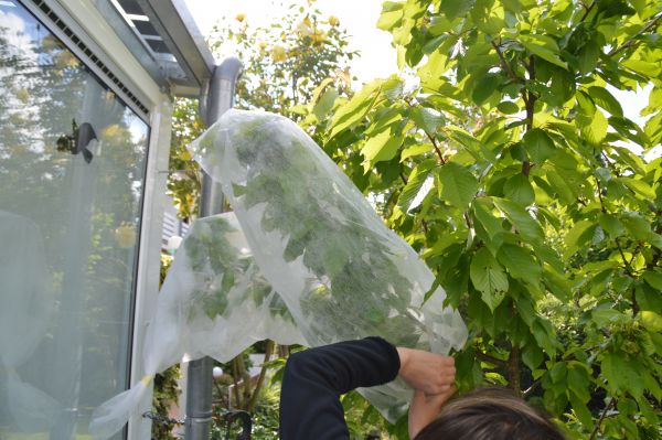 Um die heranwachsenden Äpfel zu schützen, empfehlen sich beispielsweise engmaschige Vogelnetze.