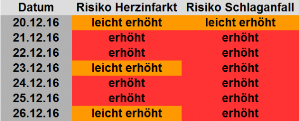 Temperaturgegensätze am Tag und in der Nacht - teils hohe Schlaganfall- und Herzinfarktrisiken in dieser Woche.