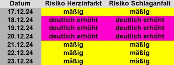 So hoch sind die Schlaganfall- und Herzinfarktrisiken in den kommenden Tagen!