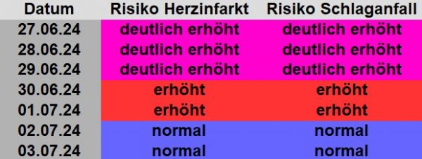 Die Schlaganfall- und Herzinfarktrisiken bis zum 03.07.2024