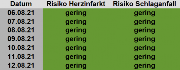 Die Schlaganfall- und Herzinfarktrisiken bis zum 12.08.2017
