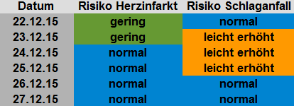 Risko Herzinfarkt Europa 28.12. - 31.12.2015