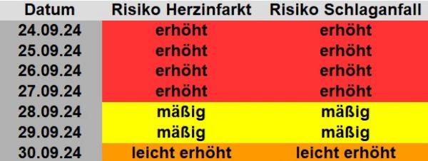 Das über die nächsten Tage leicht wechselhafte Septemberwetter sorgt vielfach für erhöhte Schlaganfall- und Herzinfarktrisiken.