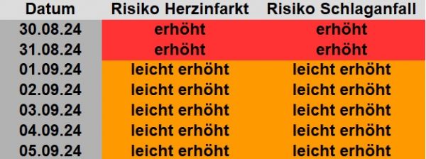 Die Schlaganfall- und Herzinfarktrisiken bis zum 05.09.2024