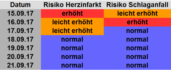 Unser aktuelles Herz-Kreislauf-Wetter bis zum 18.09.2017.