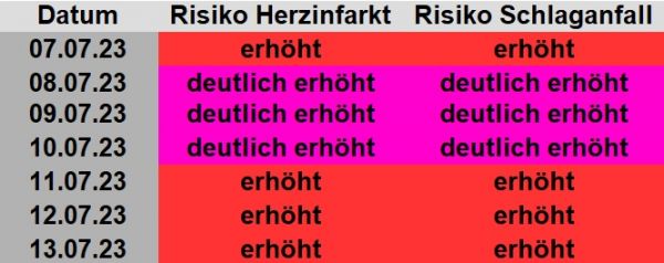 Die zum Teil extremen Temperaturen am Wochenende und zu Beginn der neuen Woche sorgen für deutlich erhöhte Schlaganfall- und Herzinfarktrisiken. Gefährdete Personengruppen sollten sich unbedingt schonen!