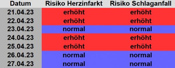 Die Schlaganfall- und Herzinfarktrisiken bis zum 27.04.2023