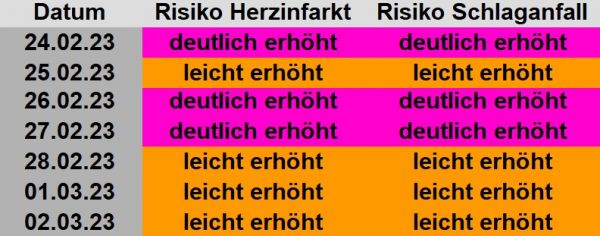 Luftmassenwechsel! Die nun einfließende Kaltluft geht in den nächsten Tagen mit teils deutlich erhöhten Schlaganfall- und Herzinfarktrisiken einher.
