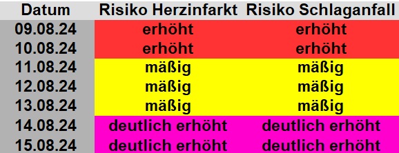 Unser Herz- / Kreislaufwetter bis zum 15.08.2024