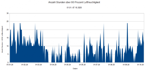 Während es im Sommer immer wieder komplett lufttrockene Tage und Zeiträume gab, wiesen Frühjahr und Herbst so gut wie keine Tage mit niedriger Luftfeuchtigkeit auf.