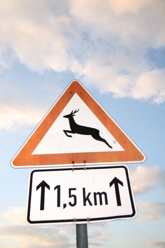 Wildwechsel ereignen sich vor allem in der Dämmerung und entlang von Waldgebieten und Feldrändern. Hier ist während der Fahrt schon mal höchste Vorsicht und angepasste Geschwindigkeit zu beachten. Insbesondere dann, wenn zusätzliche Schilder auf Wildwechsel hinweisen.