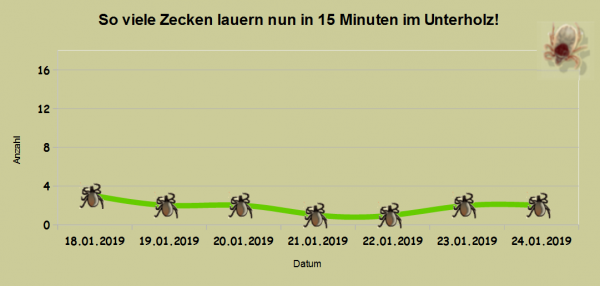Bei kühlen Tagtemperaturen meist im niedrigen einstelligen Plusbereich und Nachtfrösten besteht aktuell keine nennenswerte Zeckengefahr.