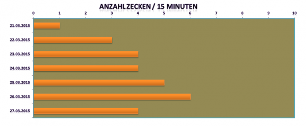 Die Zecken sind nun wieder auf Wirtsuche; mit den steigenden Temperaturen tagsüber ist zum jetzigen Zeitpunkt besonders im Flachland mit mäßiger Aktivität zu rechnen.