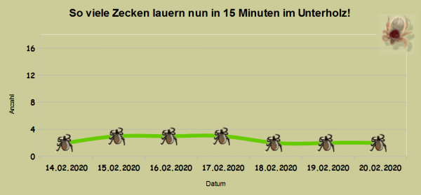 Da die Oberflächen durch zeitweilige Niederschläge oft feucht sind, ist mit leichter Zeckenaktivität zu rechnen. Das Risiko ist mit bis zu drei Zecken pro 15 Minuten zwar noch gering, aber nicht mehr zu vernachlässigen.