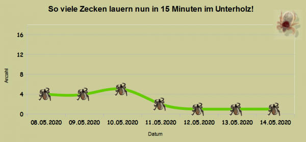 Spätestens Montag ist mit einem Kaltlufteinbruch aber wieder Schluss mit dem wilden Zeckentreiben. Danach werden die Tage zwar milder, kalte Nächte und die andauernde Trockenheit halten die Zeckenzahlen aber auf einem für diese Jahreszeit geringen Niveau.