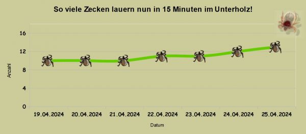 Frische Temperaturen verhindern in den kommenden Tagen eine "Zeckenexplosion" war noch; trotzdem ist das Risiko für eine Infektion im durch durchfeuchteten Flachland nun  mäßig bis hoch, besonders in den südlichen und westlichen Landesteilen.