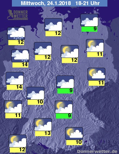 In der Nacht zum Donnerstag breiten sich dichte Wolken und zeitweiliger Regen von Nordwesten her weiter nach Südosten aus. Zum Morgen hin überdeckt das Regengebiet etwa die Nordwesthälfte. Im Süden und Osten ist es zwar meist stark, teils aufgelockert bewölkt, jedoch trocken. Die Temperatur sinkt auf 10 Grad in Köln und bis 3 Grad in München.