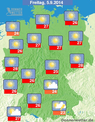 Für das kommende Wochenende berechnen die Computermodelle zur Zeit verbreitet sehr freundliches und trockenes Altweibersommerwetter. Ein Tief über Italien lenkt dabei teils feuchte Luftmassen nach Norden, so dass sich am Alpennordrand gebietsweise Schauer und Gewitter bilden. In den übrigen Regionen strahlt die Sonne jedoch von einem voraussichtlich meist blauen Himmel.