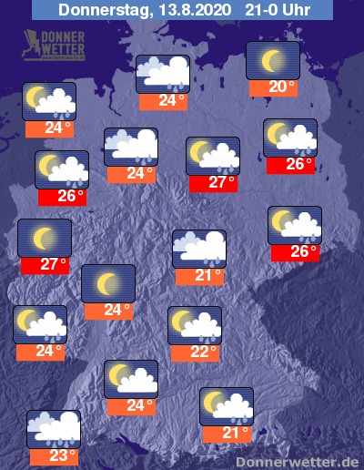 Die Temperaturen liegen am frühen Abend noch bei hochsommerlichen 27 bis 33 Grad, teilweise ist es dabei sehr schwül.