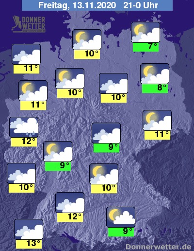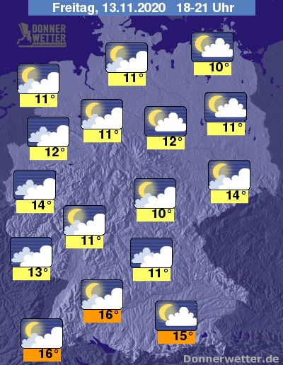 Vor Dämmerungsbeginn halten sich die Temperaturen verbreitet noch im zweistelligen Bereich zwischen 10 und 16 Grad.